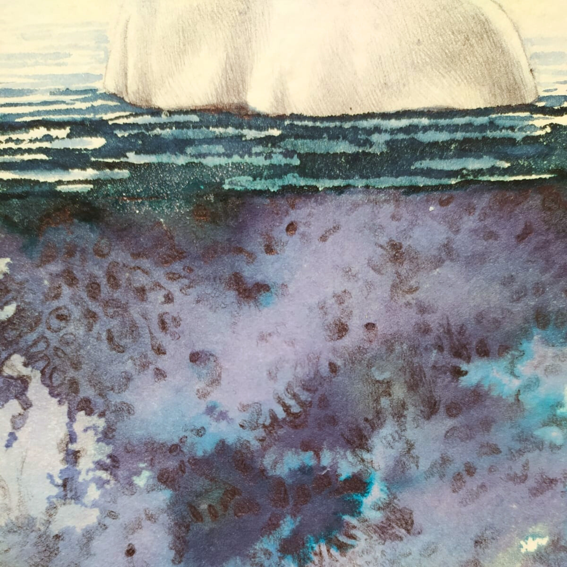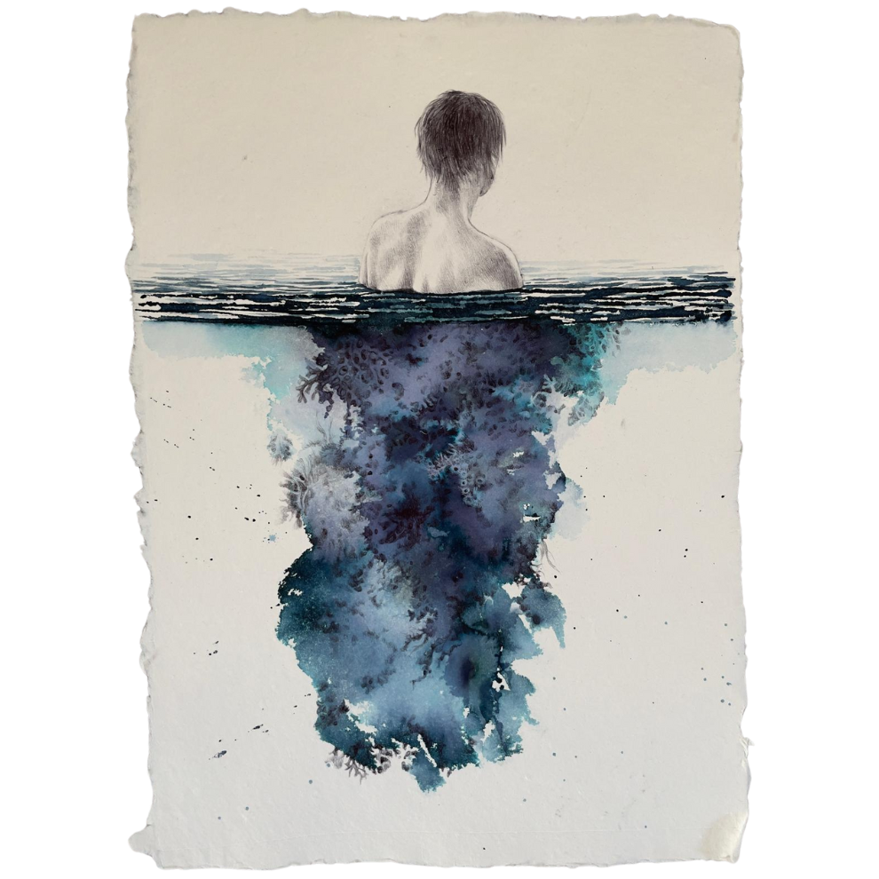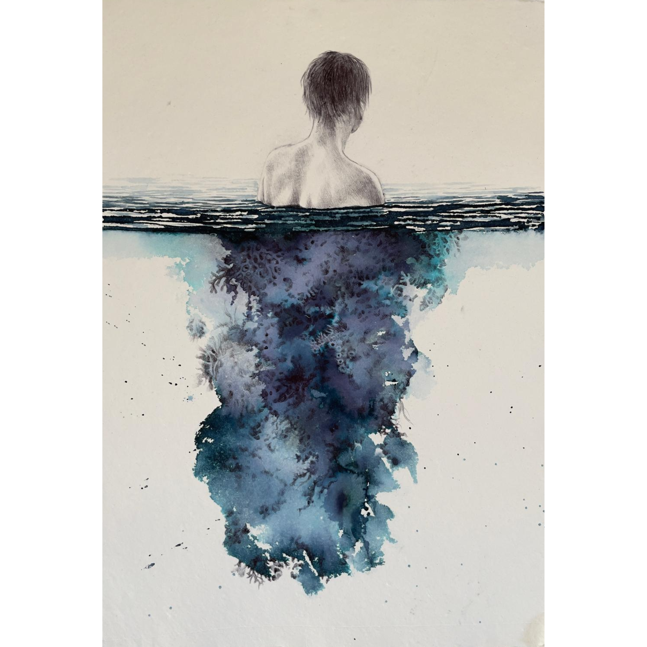 Penna bic, ecoline, acqua e cristalli di sale su carta