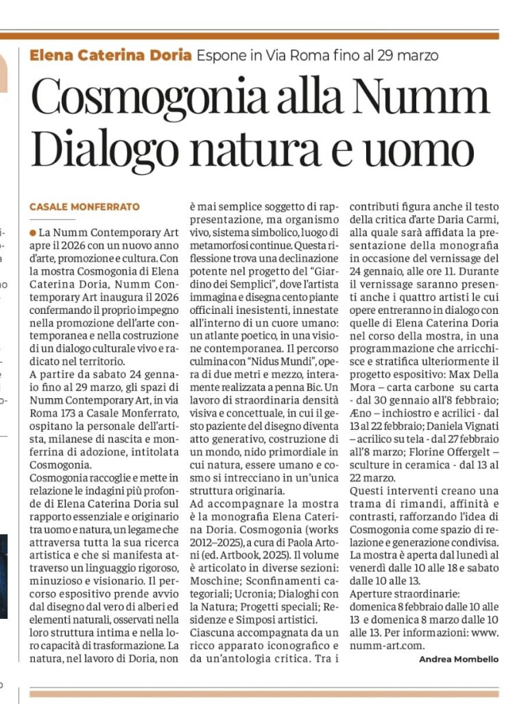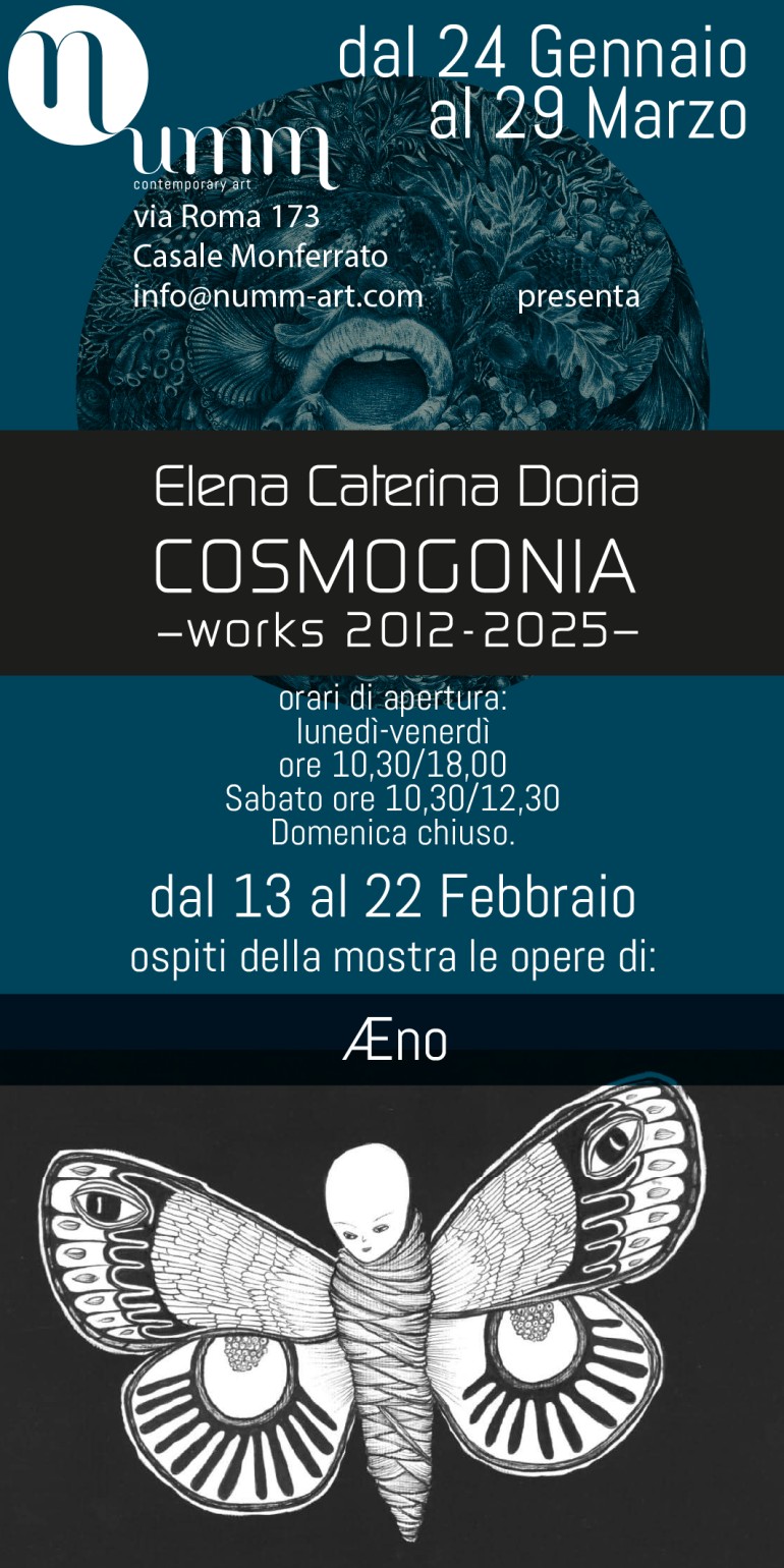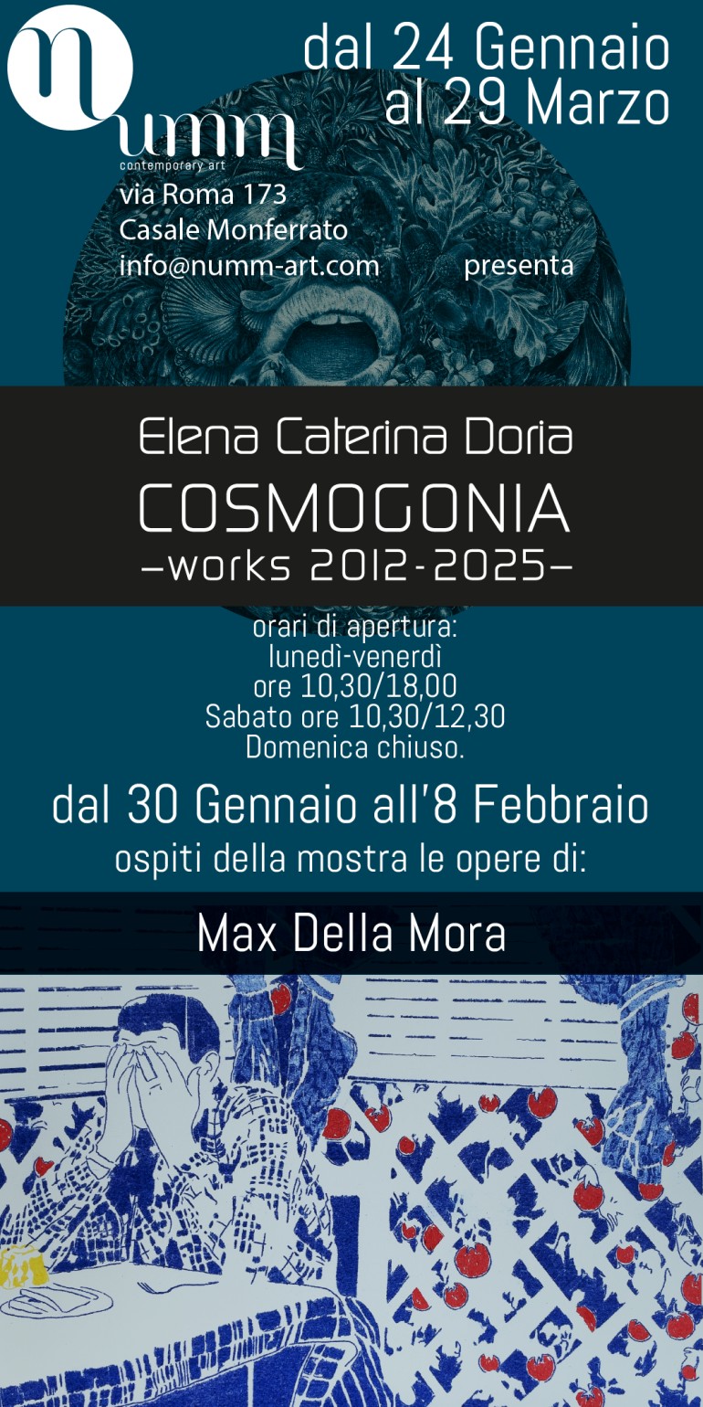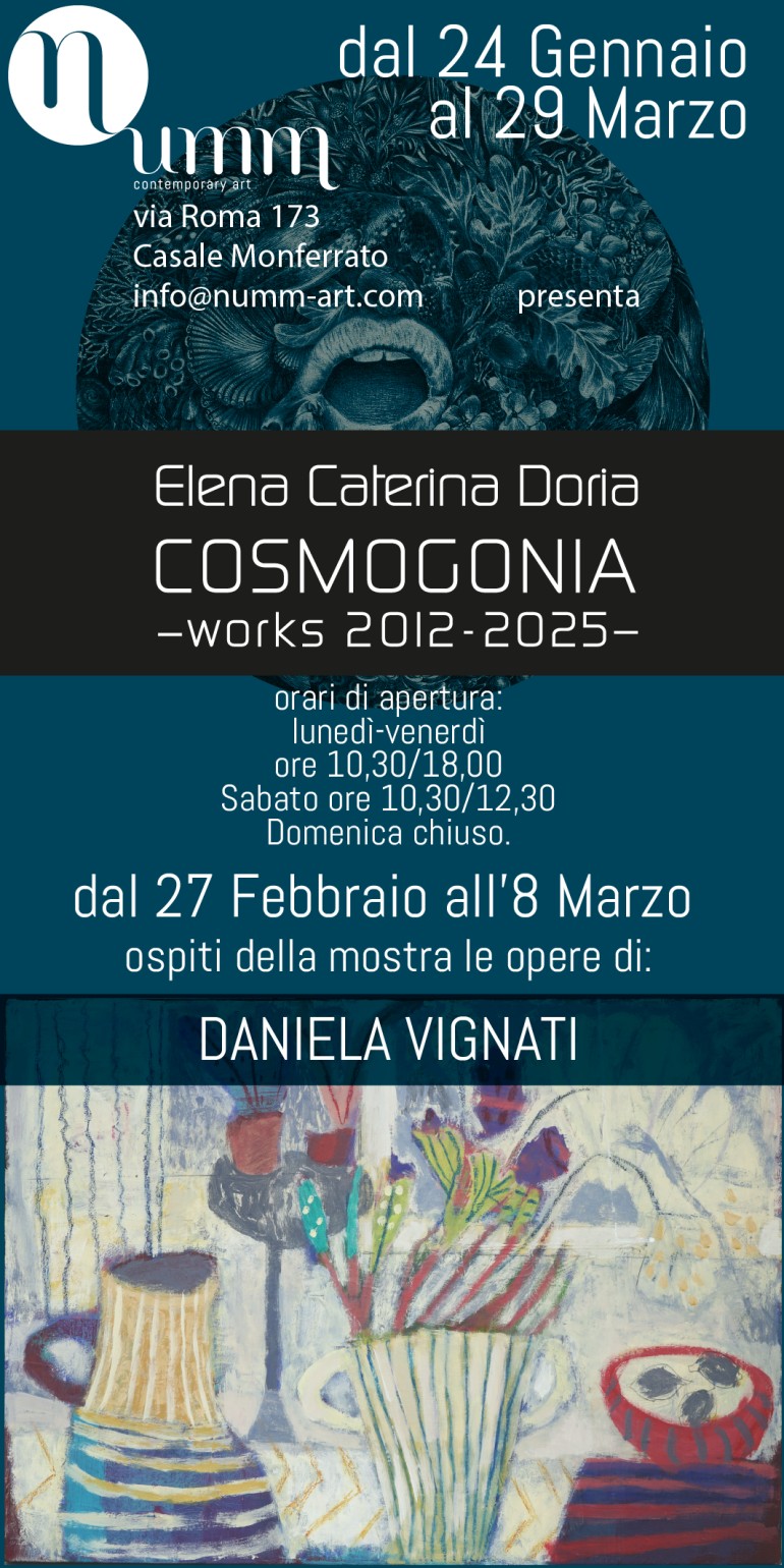 dal 13 al 22 Febbraio le sue opere entreranno in relazione con l’universo visionario di Elena Caterina Doria, dando vita a un confronto fatto di affinità, contrasti e nuove risonanze.